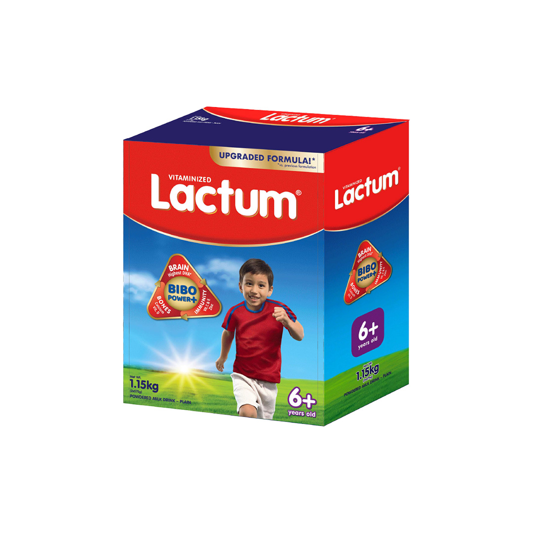| BONES. Lactum 6+ is a high source of Calcium which is necessary for bone health and Vitamin D to support bone development. |